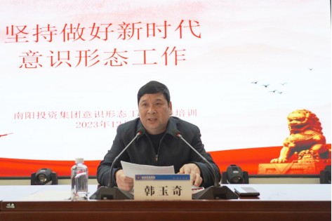 為深入學(xué)習(xí)貫徹習(xí)近平新時(shí)代中國(guó)特色社會(huì)主義思想和黨的二十大精神,全面貫徹落實(shí)習(xí)近平文化思想和習(xí)近平總書記關(guān)于意識(shí)形態(tài)工作的重要論述精神,牢牢把握鑄牢中華民族共同體意識(shí)這條主線,12月27日,南陽投資集團(tuán)舉辦意識(shí)形態(tài)專題培訓(xùn),集團(tuán)黨委副書記、監(jiān)事會(huì)主席韓玉奇作專題授課。