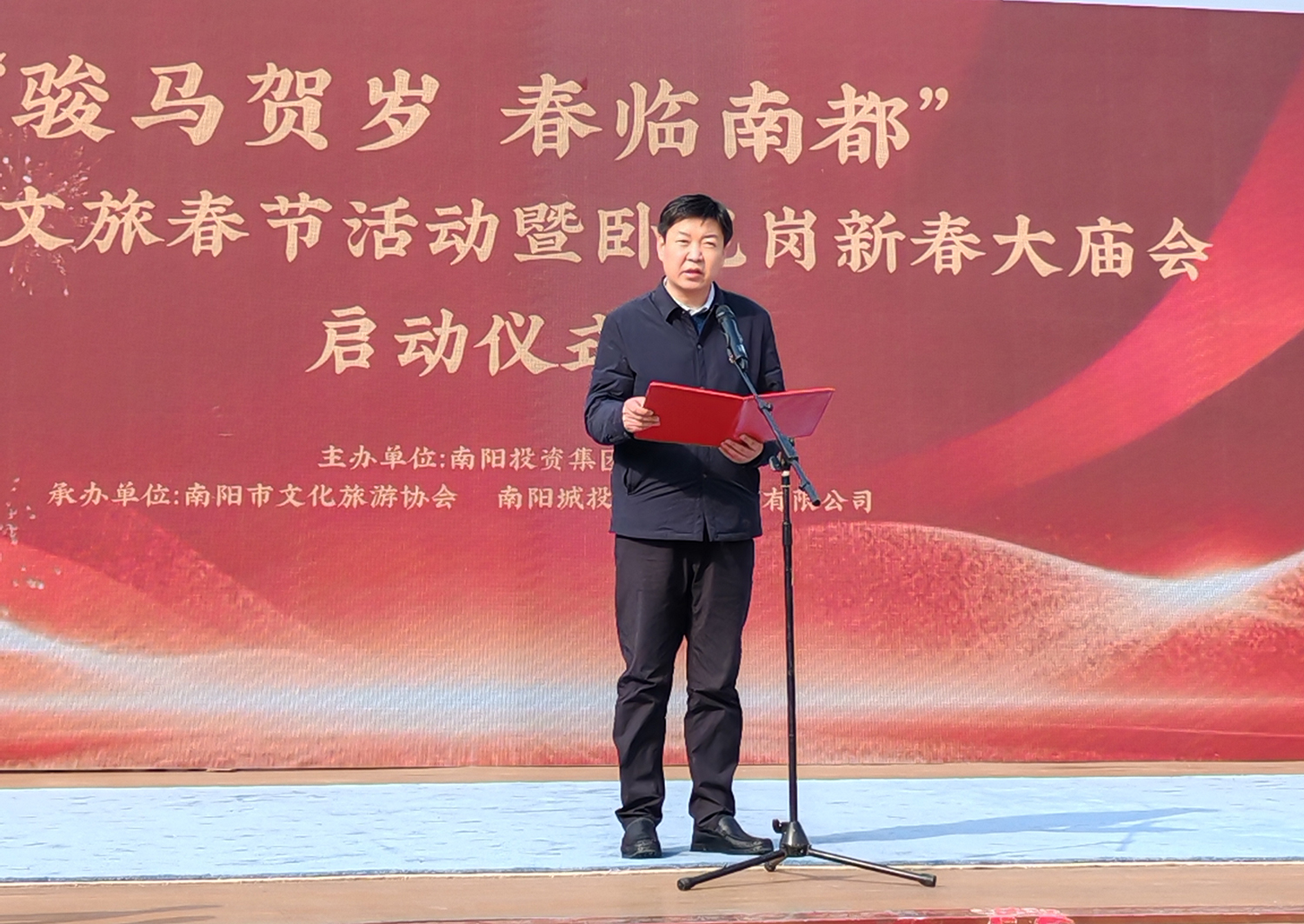 2月10日上午,“駿馬賀歲春臨南都”2026南陽文旅春節活動暨臥龍崗新春大廟會啟動儀式在臥龍崗武侯祠景區三顧廣場舉行。南陽投資集團黨委書記、董事長劉淼出席儀式并致辭。